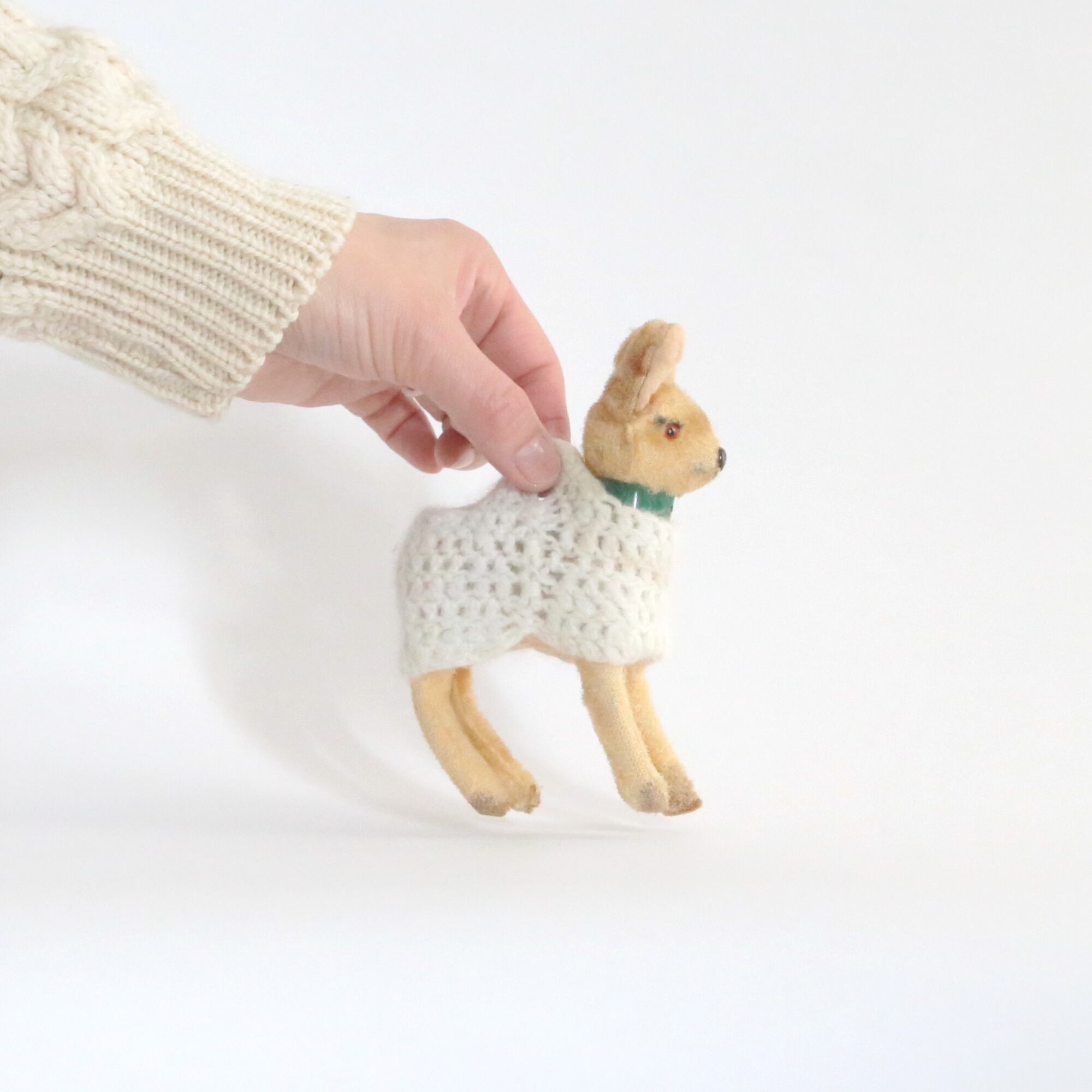 以前のオーナーさんお手製、持ち手のついた不思議なニットを着ています