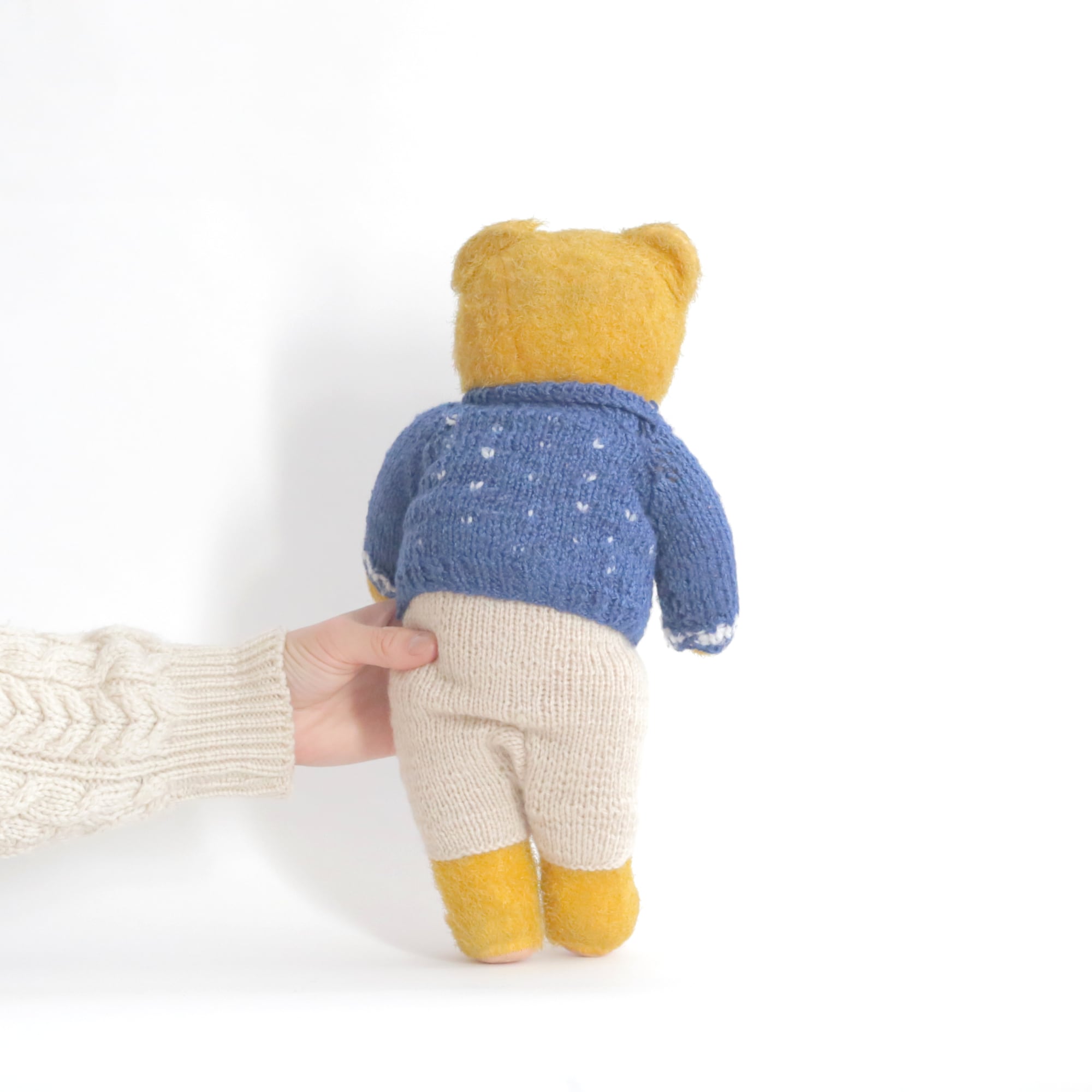 【M013】手編みニットがお似合い、お口の曲がったやさしい表情ベアさん